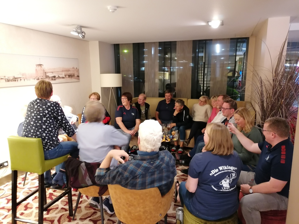 Auf der Rückfahrt gab es dann noch einmal Abenteuer. Eine dichte Wolkendecke in den Bergen nahm fast komplett die Sicht. Eine unbekannte Strecke mit vielen Kurven und quasi die Hand vor Augen nicht sehen können, das ist eine Herausforderung. Nach einem längeren Stopp während dem sich die Sicht aber leider nicht verbesserte, entschloss man sich zur Weiterfahrt. Zum Glück kam in diesem Moment ein anderes Auto vorbei, an das sich die 5 Wikinger-Autos gut dranhängen konnten, bis die Wolkendecke durchquert war. So wurde auch dieses Abenteuer bewältigt. Der Adrenalin-Spiegel war danach aber so hoch, dass trotz später Rückkehr noch ein Absacker in der Wikinger-Flur-Lounge, die traditionell jeden Abend im Flurbereich im 4 Stock des Hotels eingerichtet wurde, nötig war.