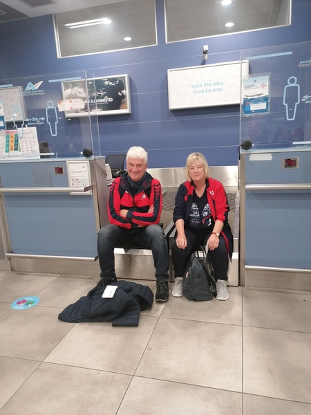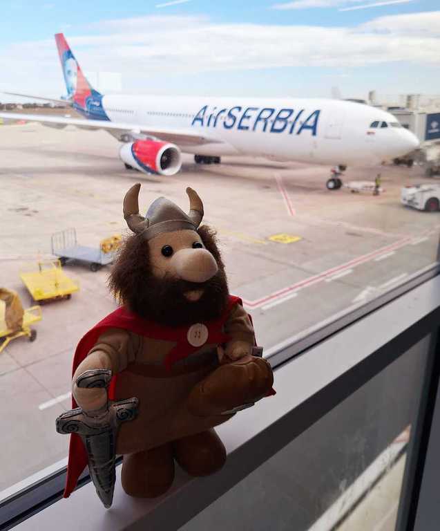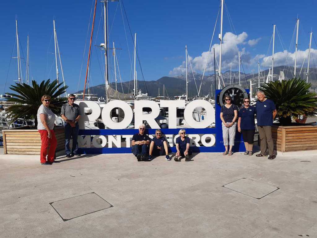 Am Sonntag ging es für die 21 Wikinger mit dem Flieger von Hannover zum Zwischenstopp in Belgrad, wo Jens aus Holland kommend zur Reisegruppe stoßen sollte. Dort gab es eine kurze Aufregung, da einige Wikinger voreilig den Weg „Exit“ statt „Transferflights“ aus dem Flieger gewählt hatten. Aber mit einem dem Weg durch eine erneute Sicherheitskontrolle ging es dann zum richtigen Gate. Von dort ging es für die wiedervereinte Reisegruppe weiter nach Tivat in Montenegro, wo die Wikinger für 5 Tage ihr Quartier gebucht hatten. Am Flughafen wurden die Mietwagen für die kommenden Tage übernommen. Ein wenig erstaunt waren die Wikinger über die vielen Kratzer und Dellen an den Fahrzeugen. Beim Warten auf die Übergabe der Autos genoss die Reisegruppe schon einmal das sonnige warme Wetter. Vom Flughafen ging es dann ins knapp 4 Kilometer entfernte Hotel Palma in Tivat.
