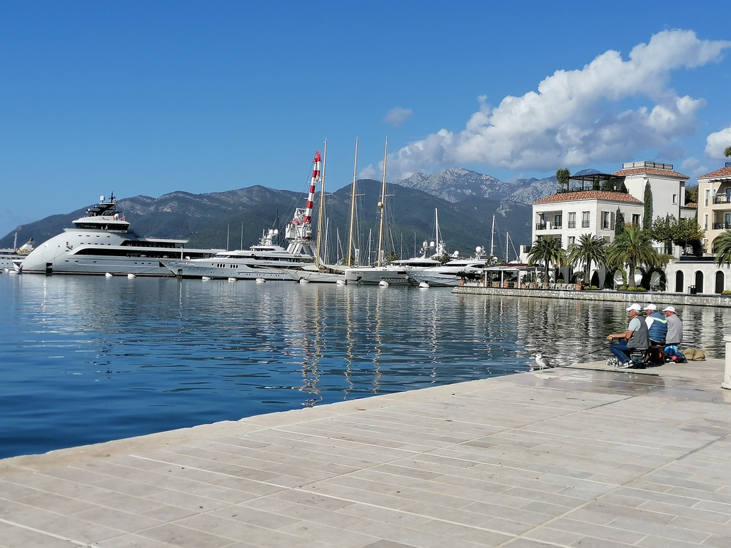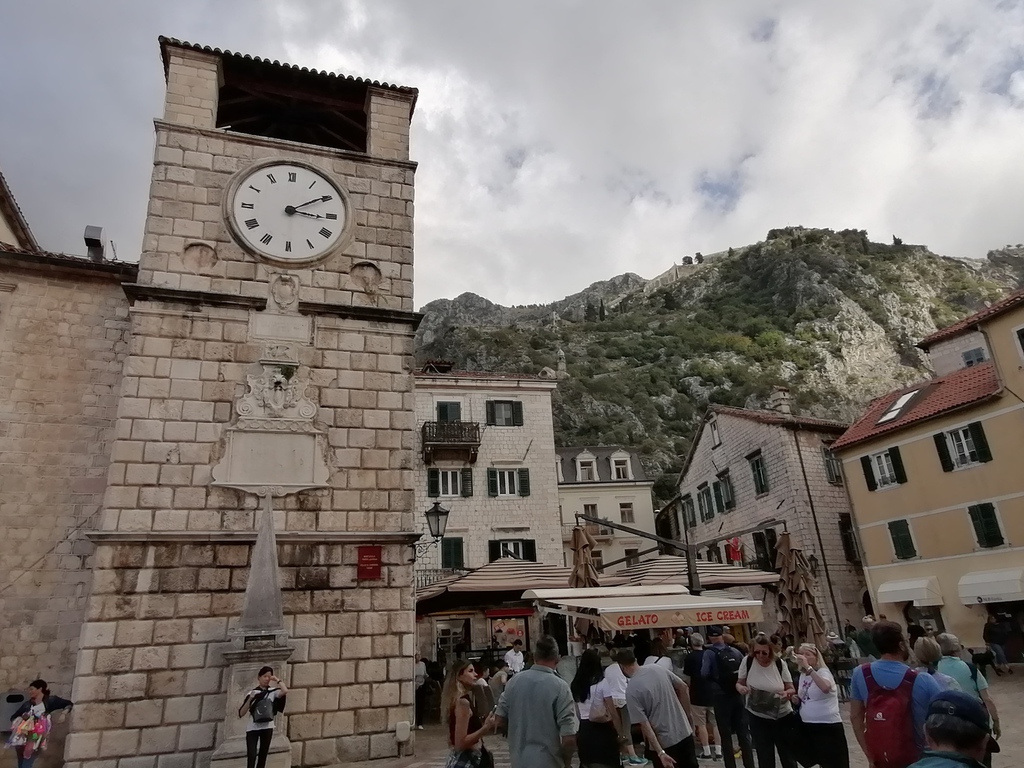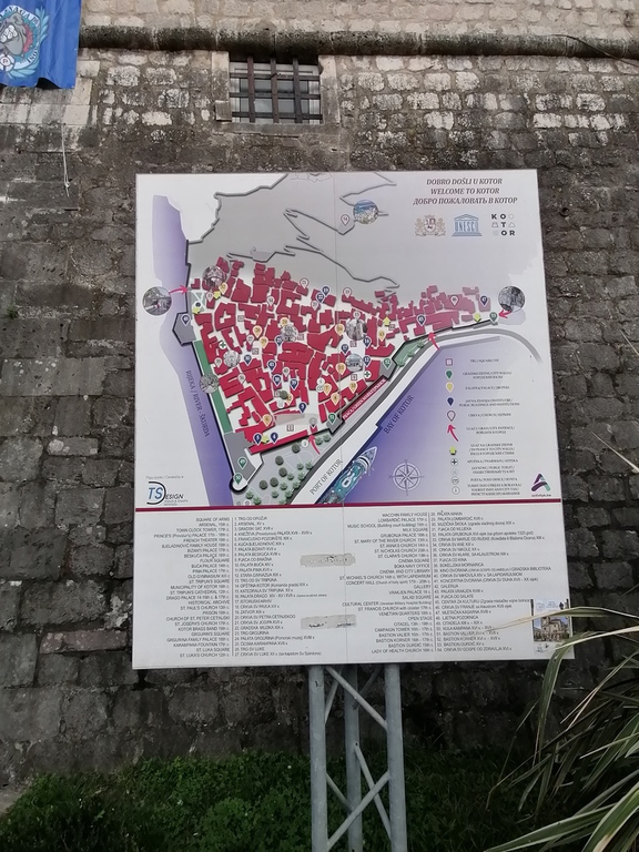 Am Montag Vormittag wurden weitere Eindrücke in Tivat gesammelt. Besonders die große Zahl an Luxus- bzw. Mega-Yachten im Porto Montenegro war beeindruckend. Nachmittags ging es dann per Linien-Bus nach Kotor. Laut diversen Angaben im Internet sollte die Tour 10 Minuten dauern, der Busfahrer korrigierte die Angabe aber auf 40 Minuten. Das wurden 40 Minuten, die es in sich hatten. Es ist ein besonderes Abenteuer, wenn der Bus auf den engen Straßen entlang der Bucht von Kotor anderen Fahrzeugen begegnet und wenn auf der einen Straßenseite Häuser direkt an der Straße stehen, während es auf der anderen Seite ohne viel Abgrenzung ins Wasser geht. Nach dieser Busfahrt war auch klar, warum die Mietwagen in Montenegro so viele Kratzer und Dellen aufweisen.