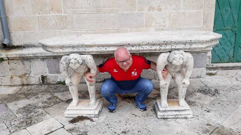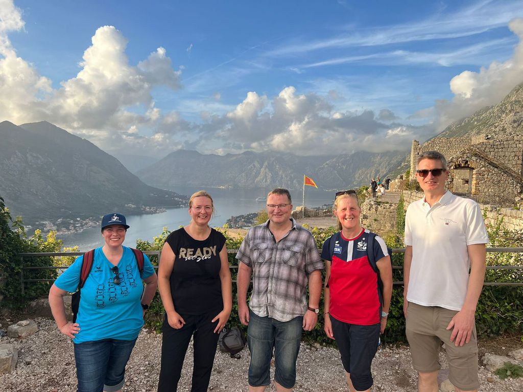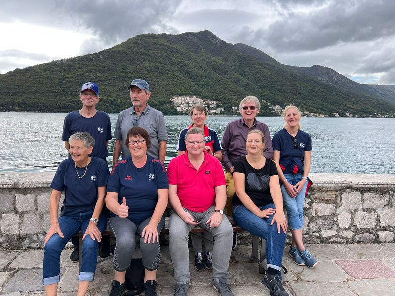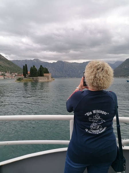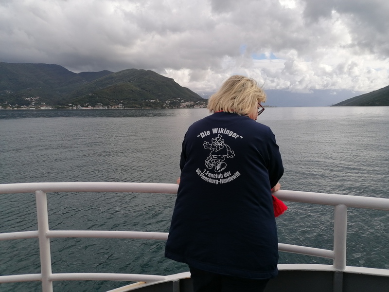 Am Donnerstag sollte die Bucht von Kotor vom Wasser aus erkundet werden. Die Wikinger hatten auch schon das Boot des Unternehmens geentert, bei dem die Tour im Vorwege gebucht war. Aber plötzlich hieß es "this is not your boat". Eine große Reisegruppe beanspruchte das Boot für sich. Die Wikinger mussten wieder von Bord. Ein anderes Boot des Unternehmens war aber nicht in Sicht. Die Besatzung des Schiffes stellte Kontakt mit dem Büro der Bootsvermieter her. Von dem bekam Roland die Information, dass die von den Wikingern gebuchte Tour wegen der Wetterprognose abgesagt sei. Das Wetter war aber ziemlich gut, im Zweifel hätte die Tour vielleicht abgekürzt werden müssen. Sehr merkwürdig ... Zum Glück lag in der Nähe ein Schiff eines anderen Unternehmens. Und dort war man sehr hilfsbereit und nahm die Wikinger auf. Und so ging es doch noch auf Tour durch die Bucht - zusammen mit einer französischen Reisegruppe. Auch wenn die Wikinger die französischen Erklärungen größtenteils nicht verstanden, haben sie die Tour sehr genossen. Und etliche Franzosen wissen jetzt einiges über die Wikinger und die SG Flensburg-Handewitt.