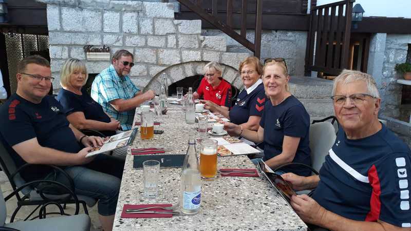 Am ersten Abend wurden die nähere Umgebung des Hotels und die montenegrinische Küche erkundet und genossen. Besonders eine Gruppe von Wikingern fühlte sich im Konoba Bacchus sehr wohl und so entstand die Idee, für den Mittwoch ein gemeinsames Essen für die gesamte Reisegruppe dort zu bestellen.