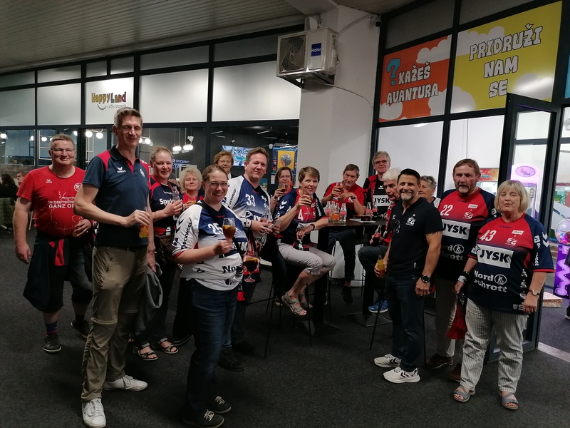 Die Wikinger waren mal wieder international unterwegs und genau wie die SG Flensburg-Handewitt das erste Mal nach Montenegro. Auf der Hinreise wurde Zwischenstation am Flughafen in Hannover gemacht. Dort wurde gemeinsam das Spiel unserer SG beim HC Erlangen geguckt und der erste Auswärtssieg der Saison gefeiert. Getrübt wurde die Freude aber durch die Verletzung von Simon Pytlick.