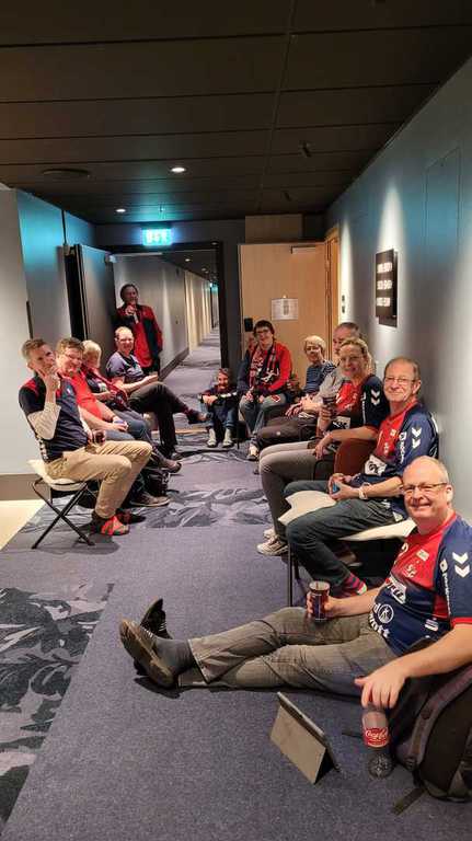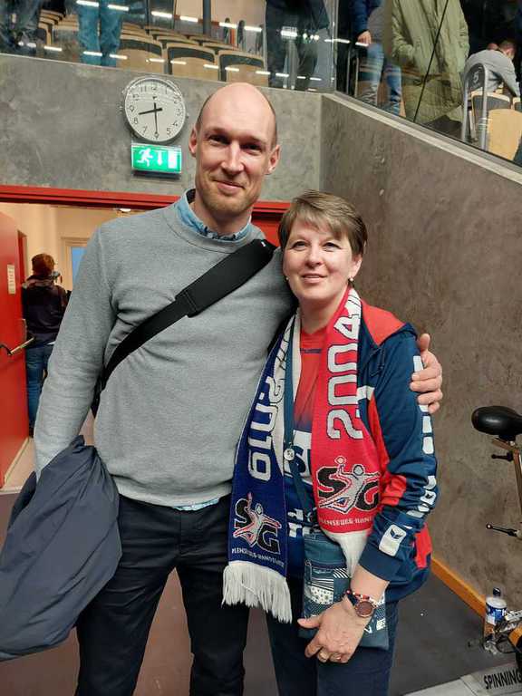 Auf dem Rückweg in das Hotel und auf der Fahrt in die „Partille Arena“ wurden noch schnell taktische Empfehlungen für das Spiel diskutiert, bevor in der vollbesetzten Halle unsere Mannschaft das Zepter in die Hand nahm und mit viel Energie und dem Willen zum Erfolg den Schweden keine Chance ließ. Unsere lautstarke und optisch präsente Unterstützung taten ein Übriges, so dass nach Spielschluss bei uns und im Kreis der Mannschaft nur glückliche Gesichter zu sehen waren. Das beweisen die zahlreichen Fotos. Auch Ex-SG-Spieler Johan Jakobsson hat sich sicher über den Auftritt der SG gefreut.