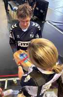 Insofern war es vielleicht nicht der beste Moment, um der Mannschaft ein Geschenk zu überreichen. Umso toller war es, dass Lasse noch einmal aus der Kabine kam und überrascht, aber erfreut die vorbereitete Naschi-Kiste in Empfang nahm. Auch für einen kurzen Klönschnack nahm sich unsere #64 Zeit.