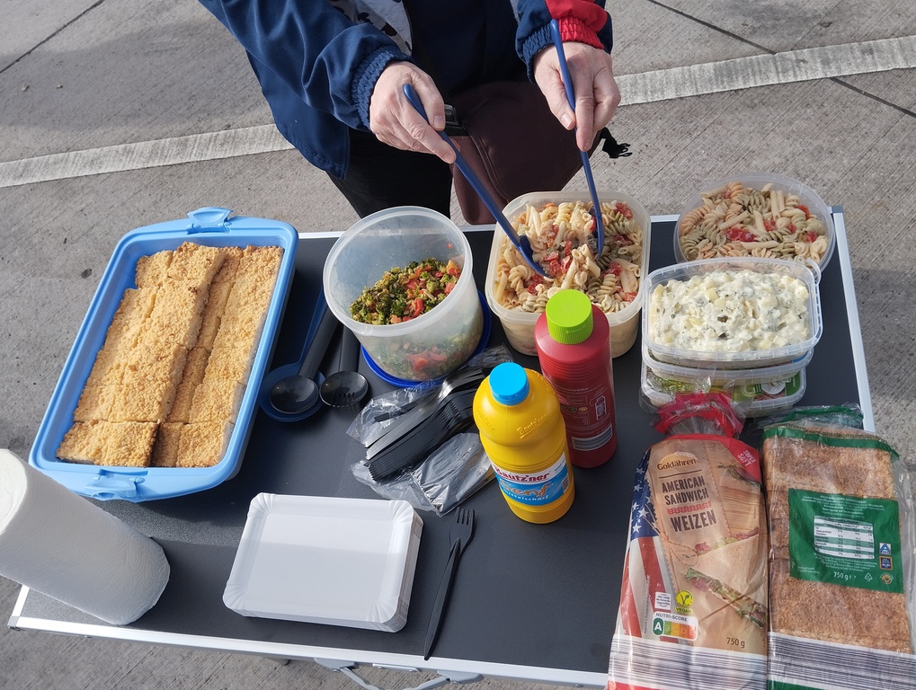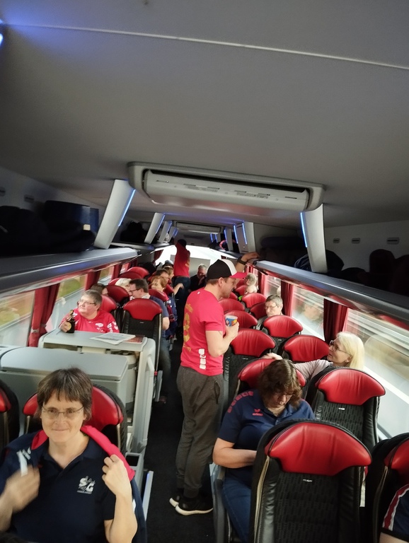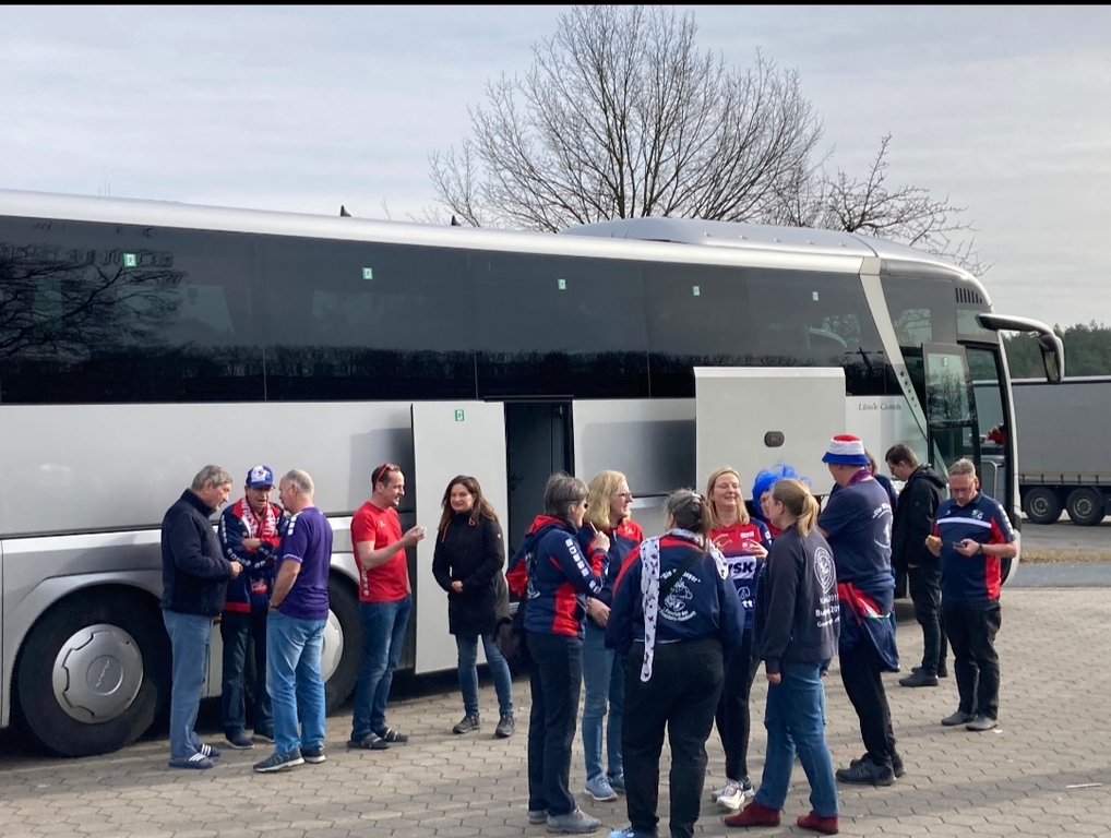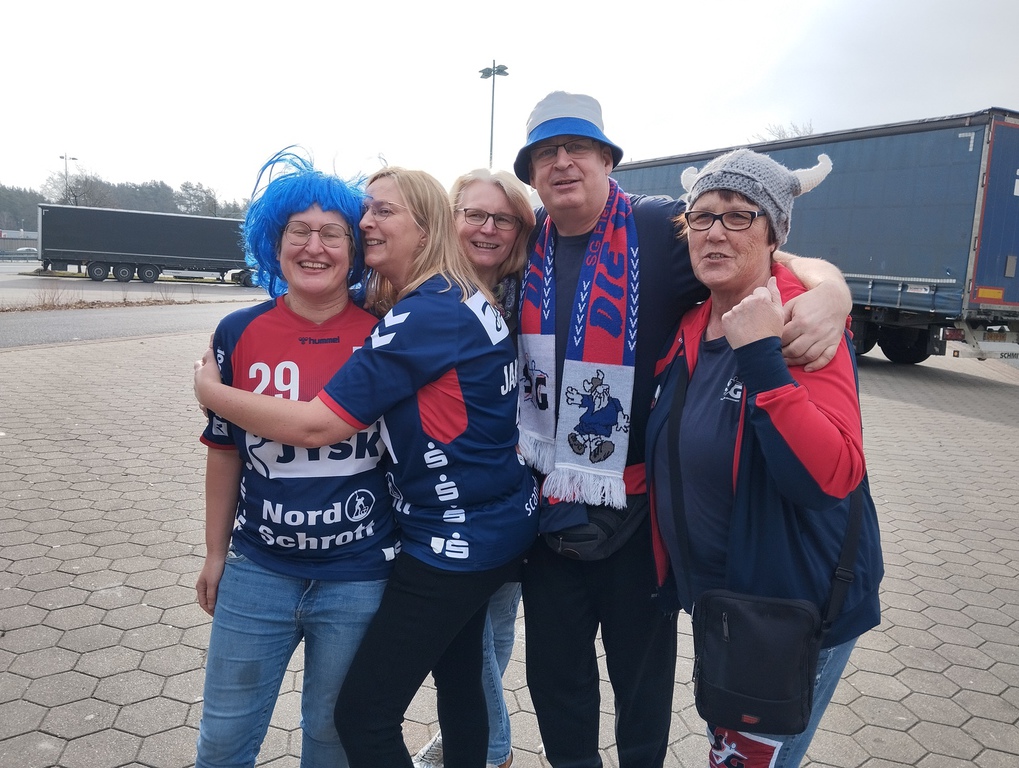 27 Wikinger machten sich am Morgen des Spieltages auf den Weg nach Wetzlar. Um 7 Uhr ging es in Flensburg los und nach Zwischenstopps in Schuby und Hamburg war die Reisegruppe komplett. Mittags gab es ein reichhaltiges Buffet mit Würstchen, Salaten von Petra und Beate und zum