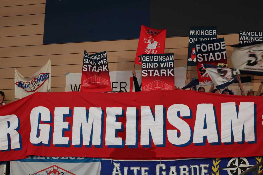 In der Buderus Arena wurde gemeinsam mit der Alten Garde und der Hölle Nord der Gästeblock beflaggt. Die Atmosphäre in Wetzlar ist immer sehr nett. Es gab viele nette Gespräche mit den Wetzlarer Fans – natürlich auch zum Thema #handballmussbezahlbarbleiben. Das Spiel verlief ganz