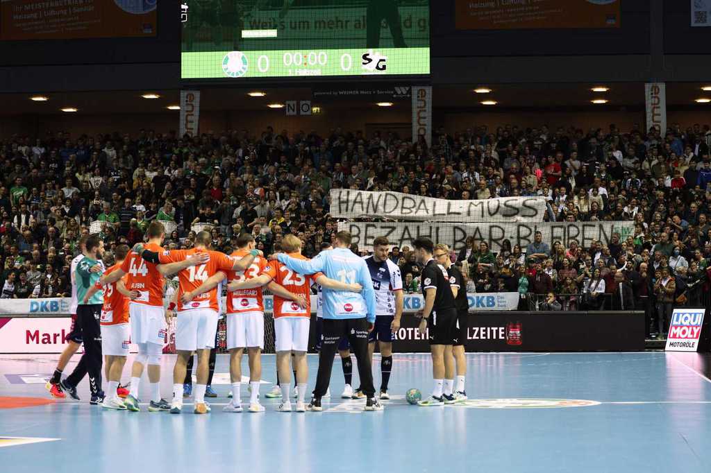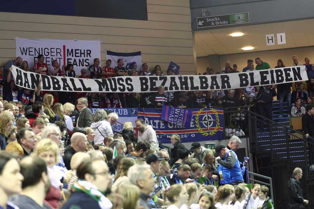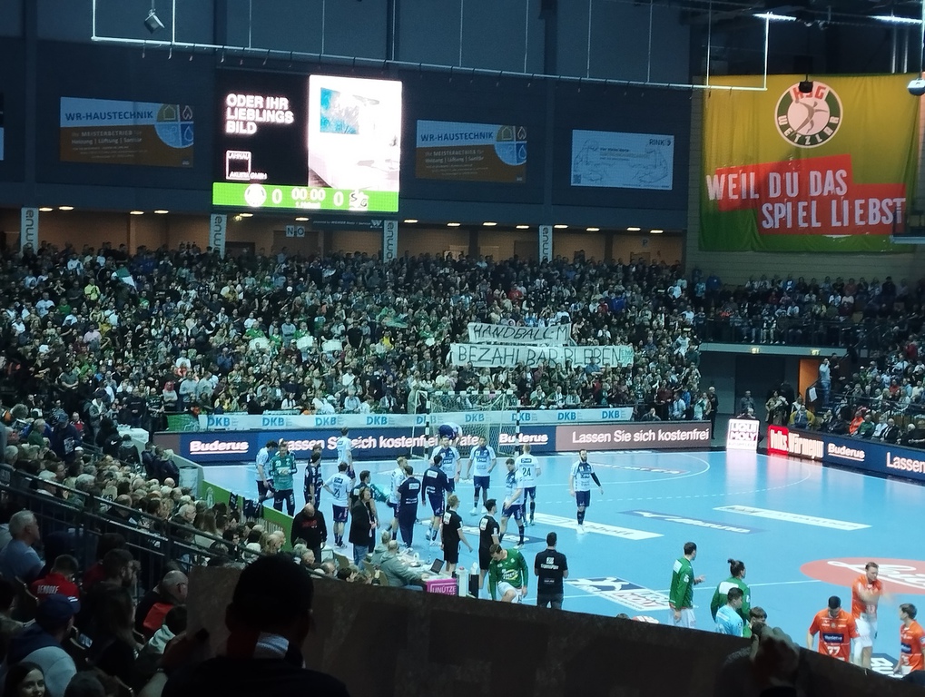 Auf den Tribünen machten die Wetzlarer und die Flensburger Fans sich stark für bezahlbaren Handball. Toll, dass die Wetzlarer die Aktion unterstützen!