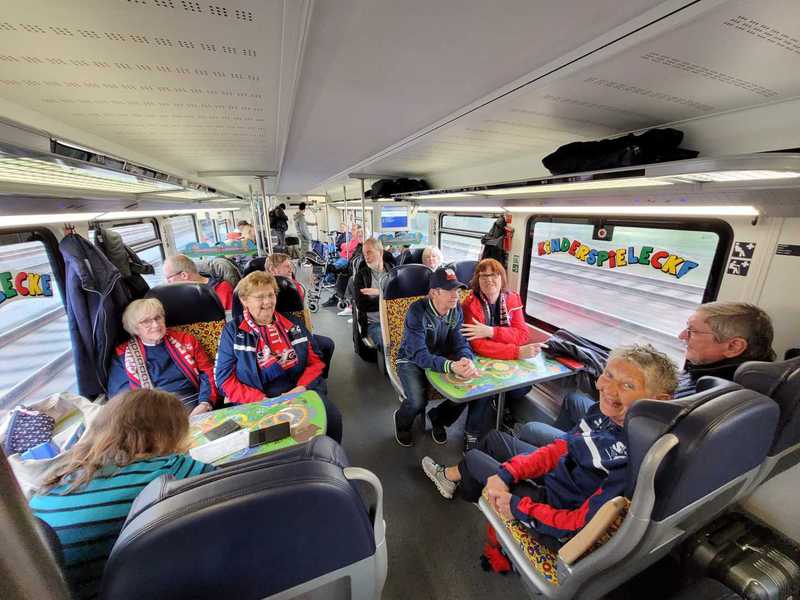 Zum Auswärtsspiel am Gründonnerstag in Leipzig machten sich 14 Wikinger gut gelaunt mit der Bahn auf den Weg. Das anschließende lange Osterwochende sollte genutzt werden, um nicht nur Handball in Leipzig zu erleben. Die Bahn brachte die Wikinger zuverlässig und pünktlich ans Ziel. Präsi Ingo kommentierte Bilder aus dem Zug mit den Worten „Da sitzt ihr ja richtig in der Kinderspielecke“.