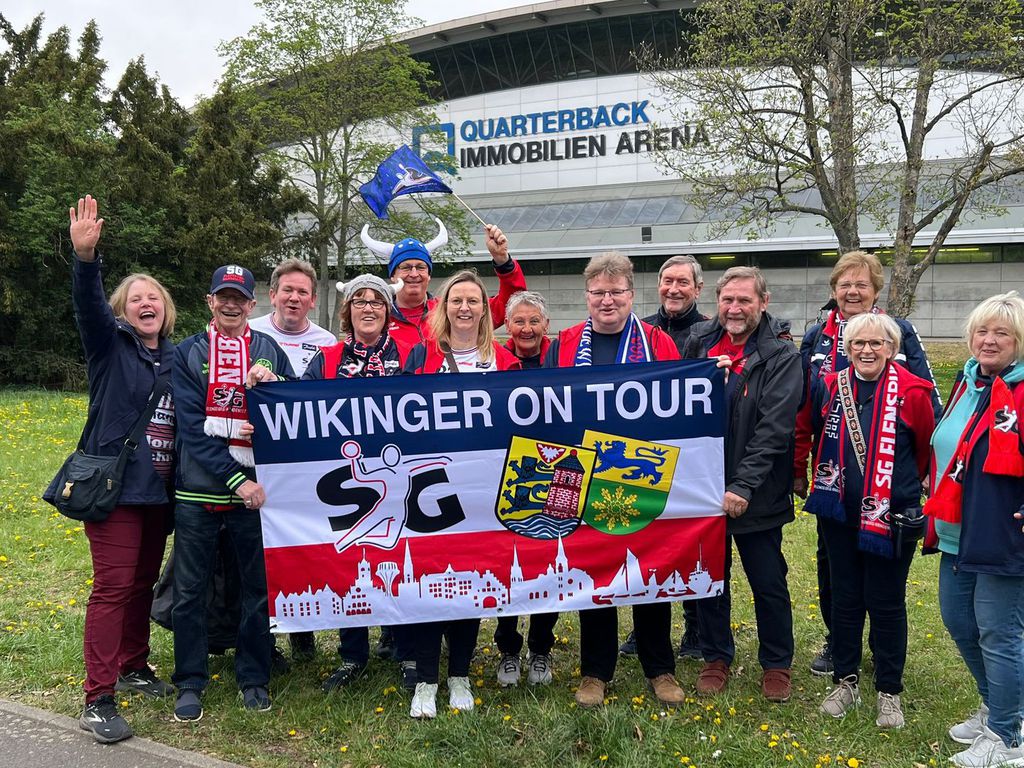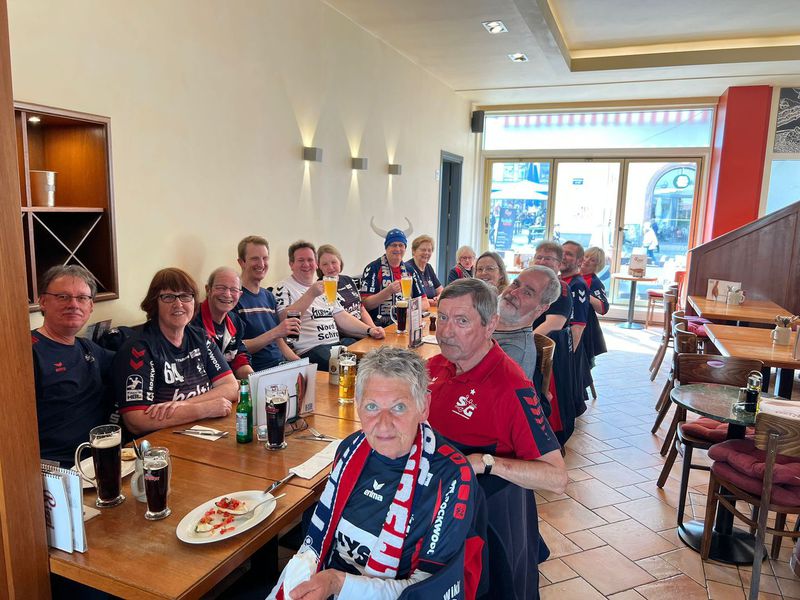 Vor dem Spiel wurden erste Eindrücke in Leipzig gesammelt. Bevor es in die Quarterback Immobilien Arena ging, wurde sich in einer Pizzeria gestärkt. Da war die Wikinger-Gruppe schon um weitere Wikinger angewachsen. In der Arena waren dann 31 Plätze von den Wikingern im Gästeblock belegt. Gemeinsam mit der Alten Garde sollte die SG zu einem Auswärtssieg angefeuert werden. Das Spiel war lange eng, bevor die SG – Dank 13 (!) Toren von „Lasse schießt euch ab“ und etlicher Paraden von Kevin – sich mit 6 Toren absetzen konnte. Am Ende wurde es dann noch einmal unnötig spannend. Aber Aksel erlöste die SG-Fans mit dem entscheidenden Treffer zum 33:31-Auswärtserfolg. Ein Baustein zum Wiederfinden der Auswärts-Gewinner-Mentalität war gelegt!