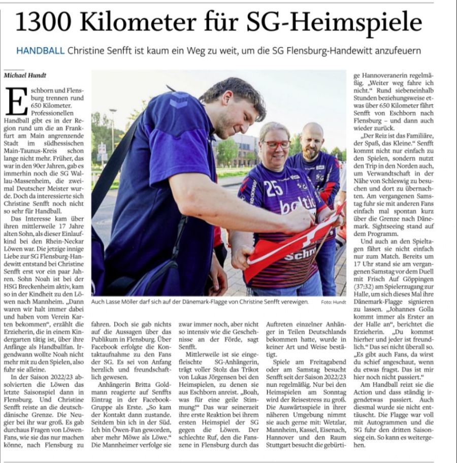 Nicht nur für Auswärtsspiele nehmen die Wikinger viele Kilometer auf sich. Einige Wikinger fahren auch für Heimspiele weit. Hier findet ihr einen Zeitungsbereicht vom 24.09.2024 - erschienen in den Zeitungen des shz.