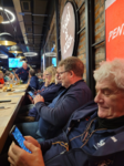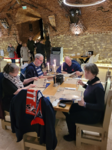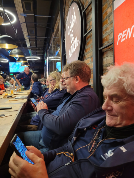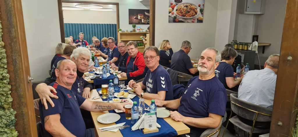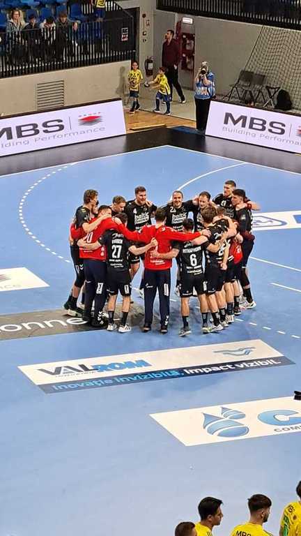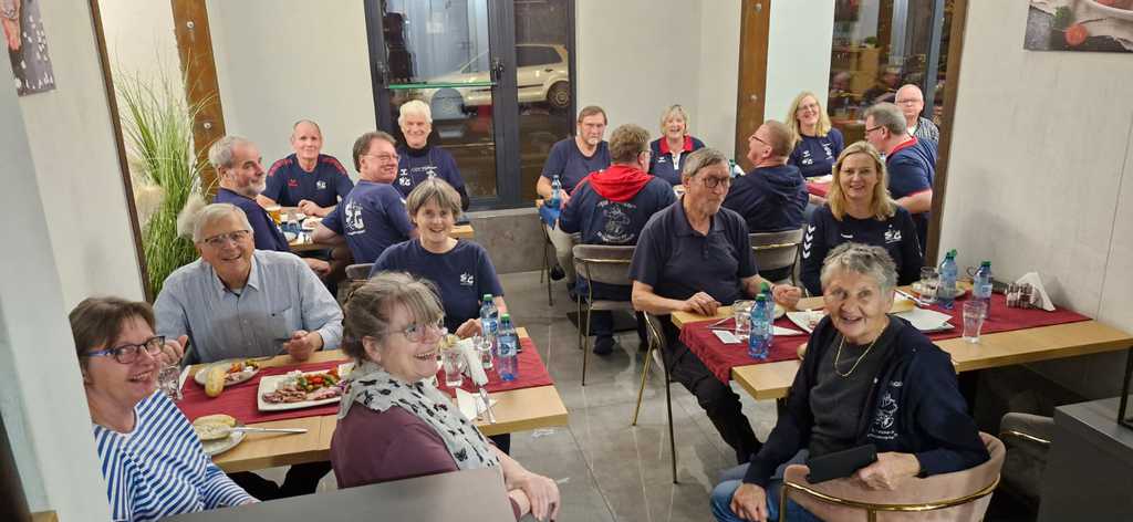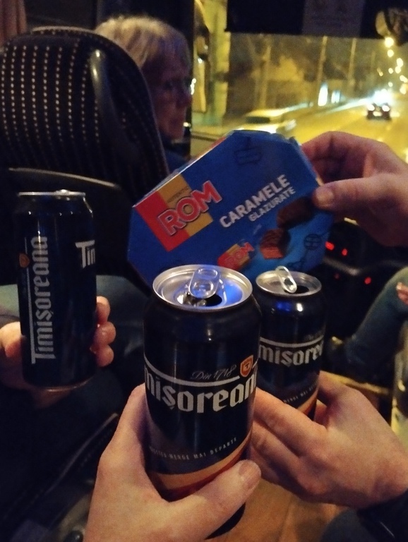 Etwas schwieriger wurde es, den Erfolg mit der Mannschaft zu feiern. Unsere „Wärter“ ließen uns nicht auf die Platte und so konnten wir erst nach dem begleiteten Auszug aus der Halle durch einen Nebeneingang vor den Kabinen auf das Team treffen. Groß war die Freude und alle Gespräche mit Mannschaft und Trainern von gelockerter, fröhlicher Atmosphäre gekennzeichnet. – Unsere anschließende Siegesfeier war entsprechend – auch Dank der von Catalins Familie gespendeten flüssigen und süßen Verpflegung für die Rückfahrt!