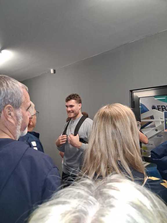 Die erste Überraschung am Flughafen: Wir trafen auf Johan Hansen und seine Teamkollegen aus Skanderborg, die ebenfalls auf dem Weg nach Rumänien waren. Die Freude auf beiden Seiten war riesig. Botschaft an alle: Johan geht es gut, er und seine Familie fühlen sich wohl. Flensburg und die Fans vermisst er!