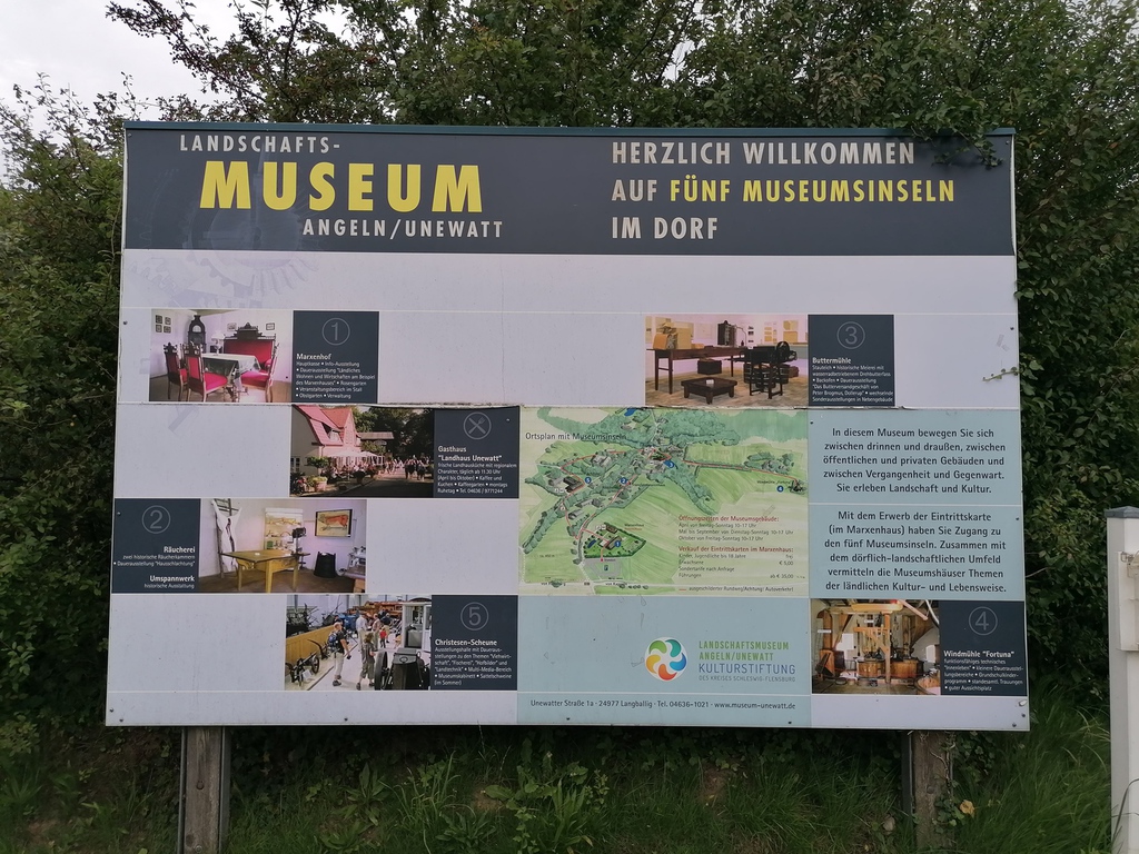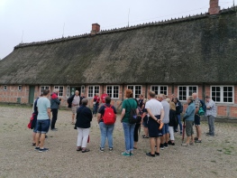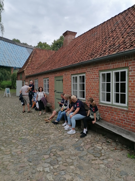 Die Buttermühle war das nächste Ziel und pünktlich zum Regenschauer wurde die Christesen-Scheune erreicht, wo alte landwirtschaftliche Geräte und Fahrzeuge, ein Fischer und die Geschichte der Angeliter Rinder und der Angeliter Sattelschweine ausgestellt sind. Mancher hat sich im Nachhinein geärgert, nicht genauer hingeschaut zu haben. Dank der besonderen Beziehungen von Ede durften die Wikinger auch das frisch renovierte Christesen-Haus von innen bewundern.