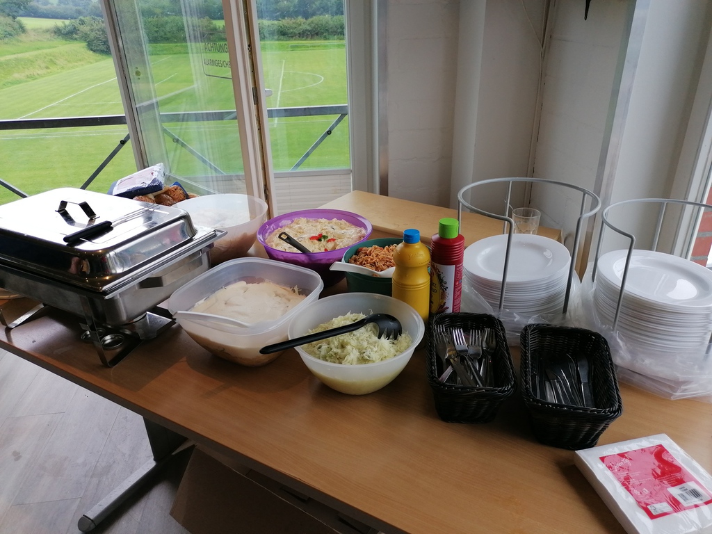 Renate, Heike, Ede und Gerd hatten die Bar gut bestückt. Und zum Essen gab es für die Wikinger Leckeres vom Grill und eine große Auswahl an Salaten. Gut gestärkt waren dann geistige Fähigkeiten gefragt. Es gab ein Quiz mit Fragen zur SG Flensburg-Handewitt (das können die Wikinger!), zum Museum in Unewatt (hätte man doch besser aufgepasst und hingeguckt!) und zum TV Grundhof (man muss wissen, wo man zu Gast ist). Jürgen und Iris hatten das meiste Wissen und Würfelglück und waren damit Quiz-Sieger.